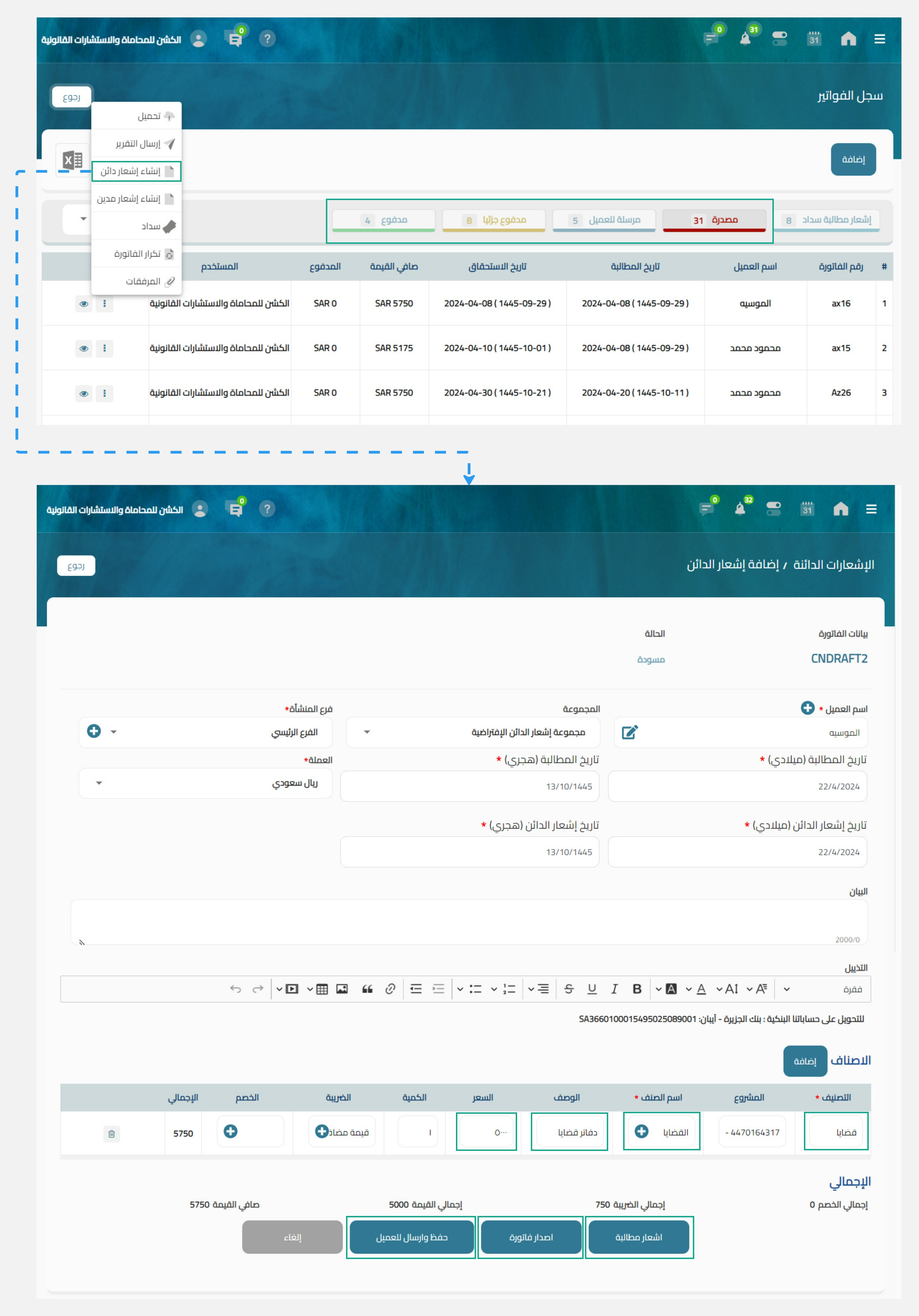 " ثم إختيار إنشاء اشعار دائن لتقوم بتعديل الفاتورة.